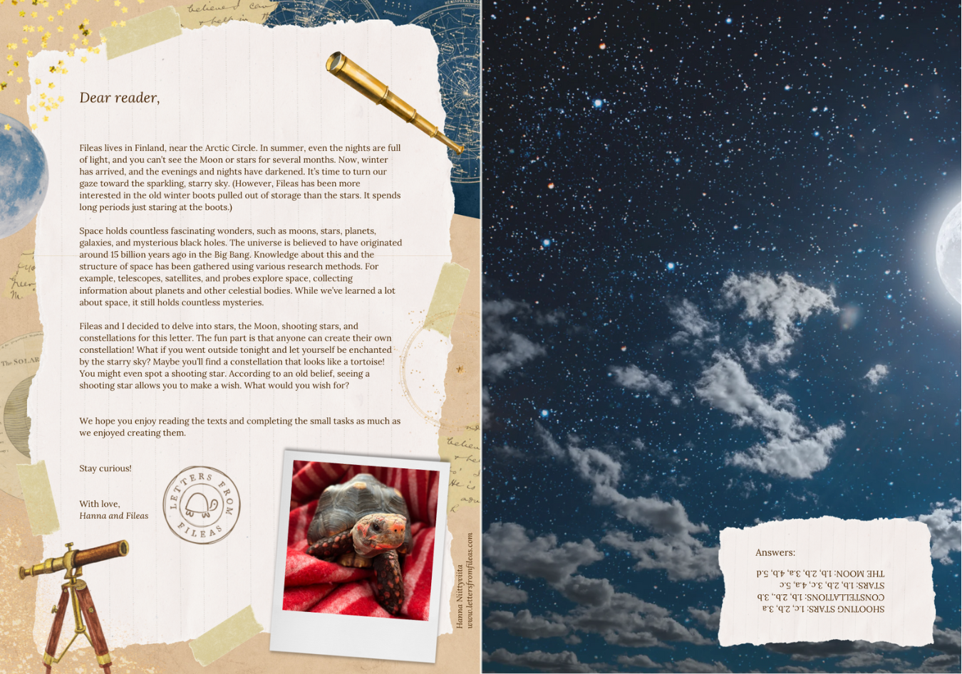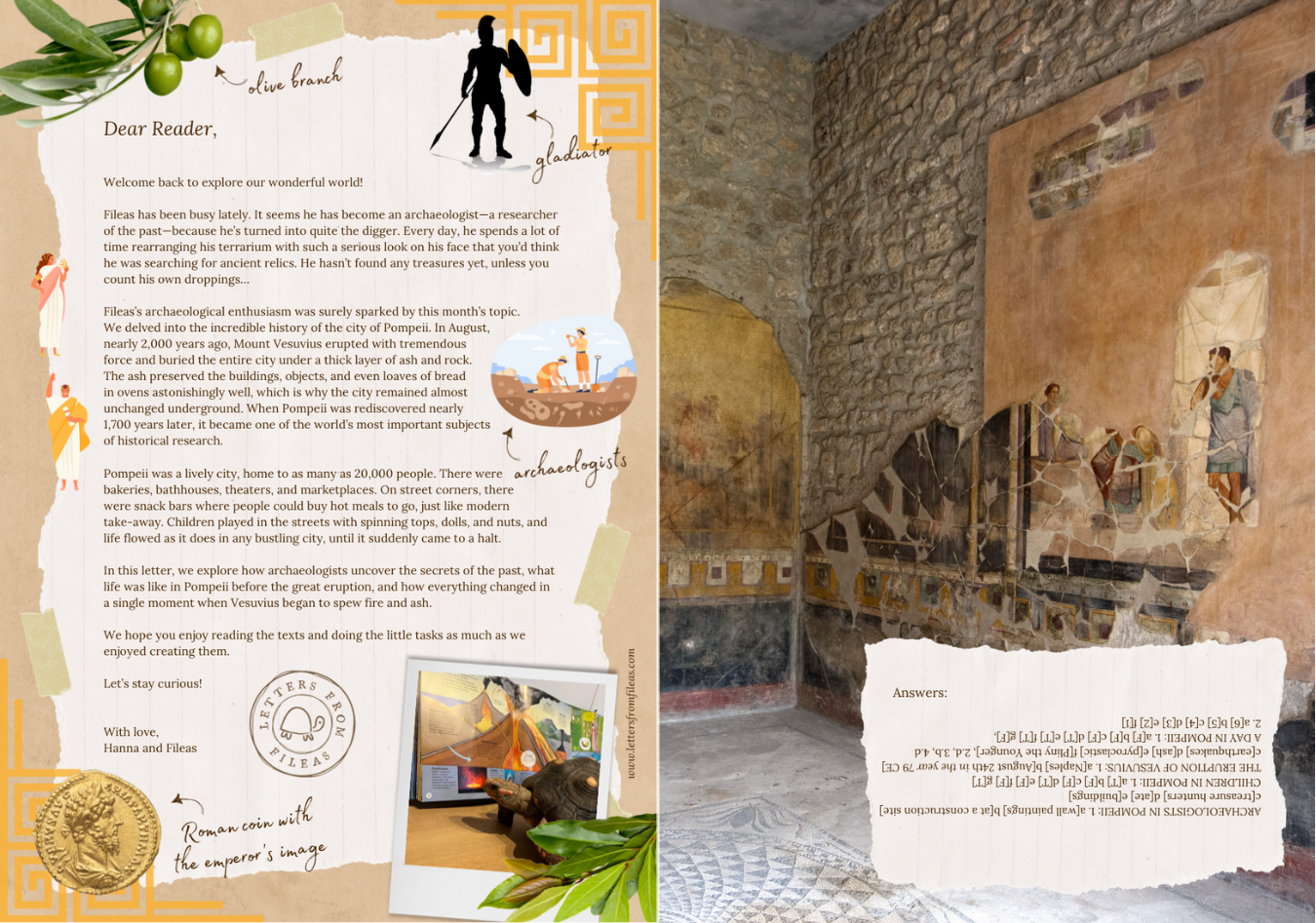 All ages will find Letters from Fileas full of curiosities! The letters are designed especially for children who can already read, typically from around age 8 and up. They aim to improve children's reading comprehension skills and to increase their general knowledge.